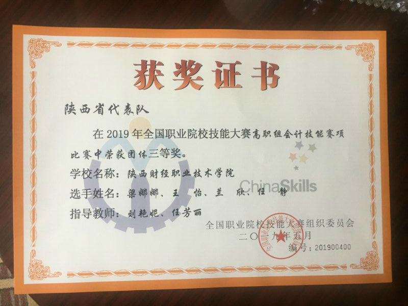 我院获2019年全国职业院校技能大赛高职组会计技能赛项三等奖