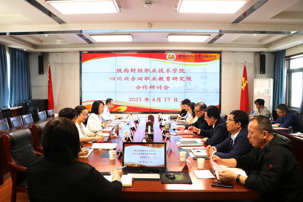 程书强首先对孙英一行的到访表示热烈欢迎,并对过去数年来双方的合作进展进行了回顾总结。他指出:近年来,四川兴合田职业教育研究院飞速发展,取得了一些骄人的成绩,在全国同行处于领先地位;我校在陕西高职圈中奋勇拼搏,追赶超越,无论是在专业数量、招生规模、内涵建设及社会影响力等方面都有了大幅度的攀升。我校与兴合田职业教育研究院有着良好的合作基础和广阔的合作前景,希望双方下一步就学校治理、教育评价改革、双高建设等方面加强合作。目前,我校正在进行省级“双高”建设,也在努力建设“智慧校园”和“绿色学校”,接下来还将全力冲刺国家“双高”,希望借助四川兴合田职业教育研究院专家智库的力量,为促进学校的高质量发展提供智力保障。